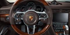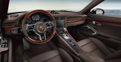 Zazwyczaj w kabinie Porsche króluje aluminium, ewentualnie włókno węglowe. Tym razem jednak postawiono na drewno. Ten szlachetny materiał zdobi nie tylko elementy kokpitu, lecz także kierownicę, czy gałkę zmiany biegów. Oczywiście jasnobrązowe drewno w sportowym aucie nie przypadnie do gustu każdemu, lecz Porsche twierdzi, że chętnych nie powinno zabraknąć. Tym bardziej, że w parze z drewnianym wykończeniem idzie także skórzana tapicerka i bogate wyposażenie.